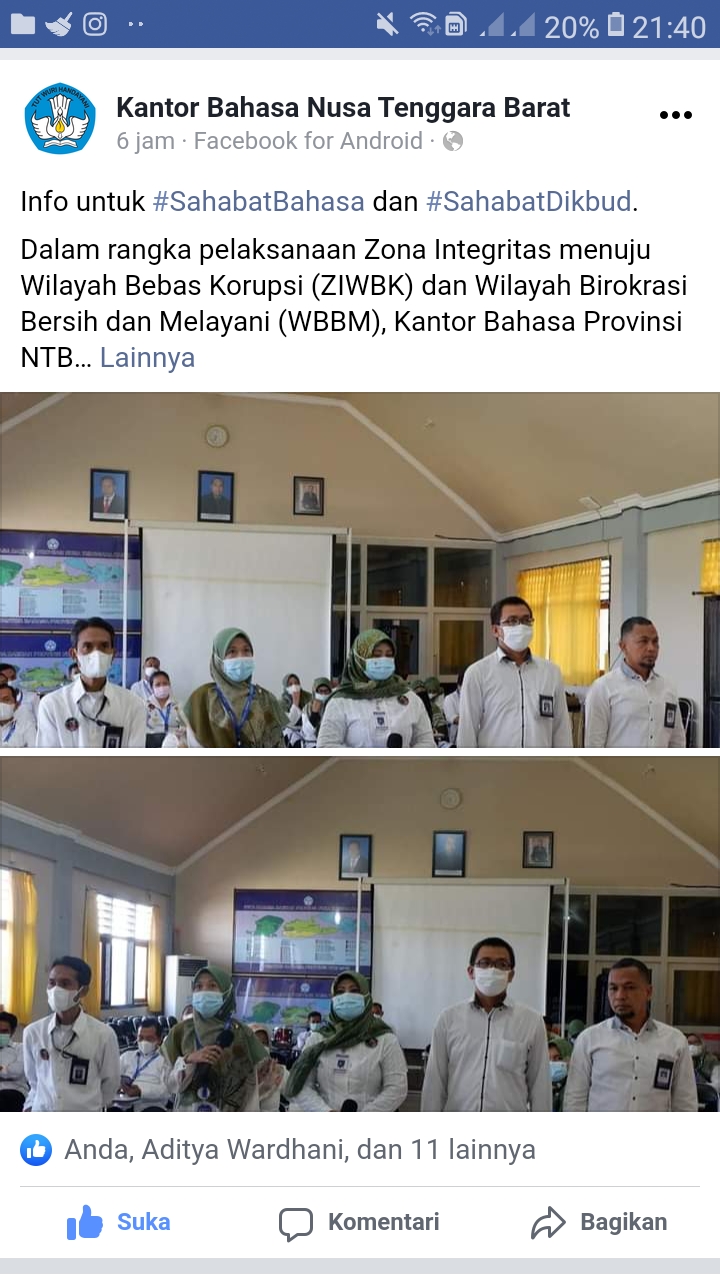 Balai Bahasa Provinsi Nusa Tenggara Barat berkomitmen penuh menuju Zona Integritas Wilayah Bebas dari Korupsi.