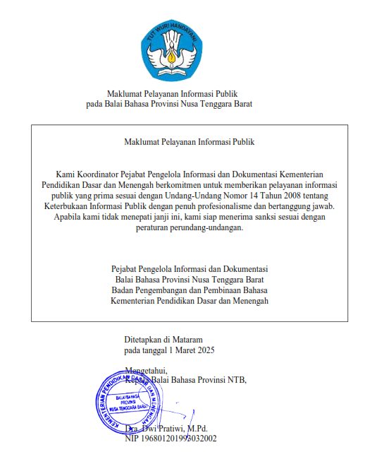 Perjanjian Kinerja Kepala Balai Bahasa Prov. NTB Selengkapnya
