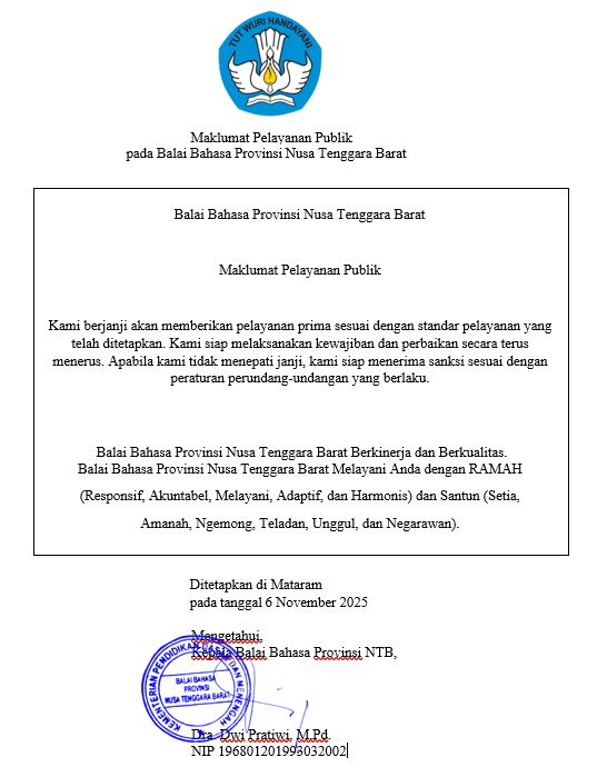 Unit Layanan Terpadu Balai Bahasa Provinsi NTB